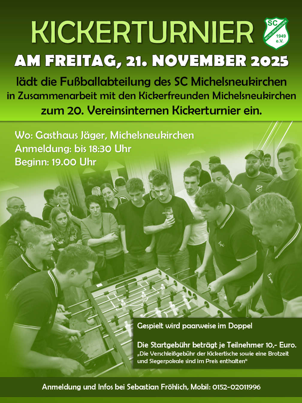 Michelsneukirchen. Die Jugendfußballer der Spielgemeinschaft SC Michelsneukirchen, TSV Falkenstein und SV Obertrübenbach trafen sich auch heuer wieder zum internen Kickerturnier im Jägersaal. In spannenden und intensiven Spielen wurde die langjährige Verbundenheit der Partner sowie der verschiedenen Jugendmannschaften untereinander vertieft. In zwei Altersgruppen aufgeteilt wurden in der Vorrunde im Modus jeder gegen jeder die Plätze ausgespielt. Nach einer kleinen Brotzeitpause ging es dann in die K.O.-Runde.