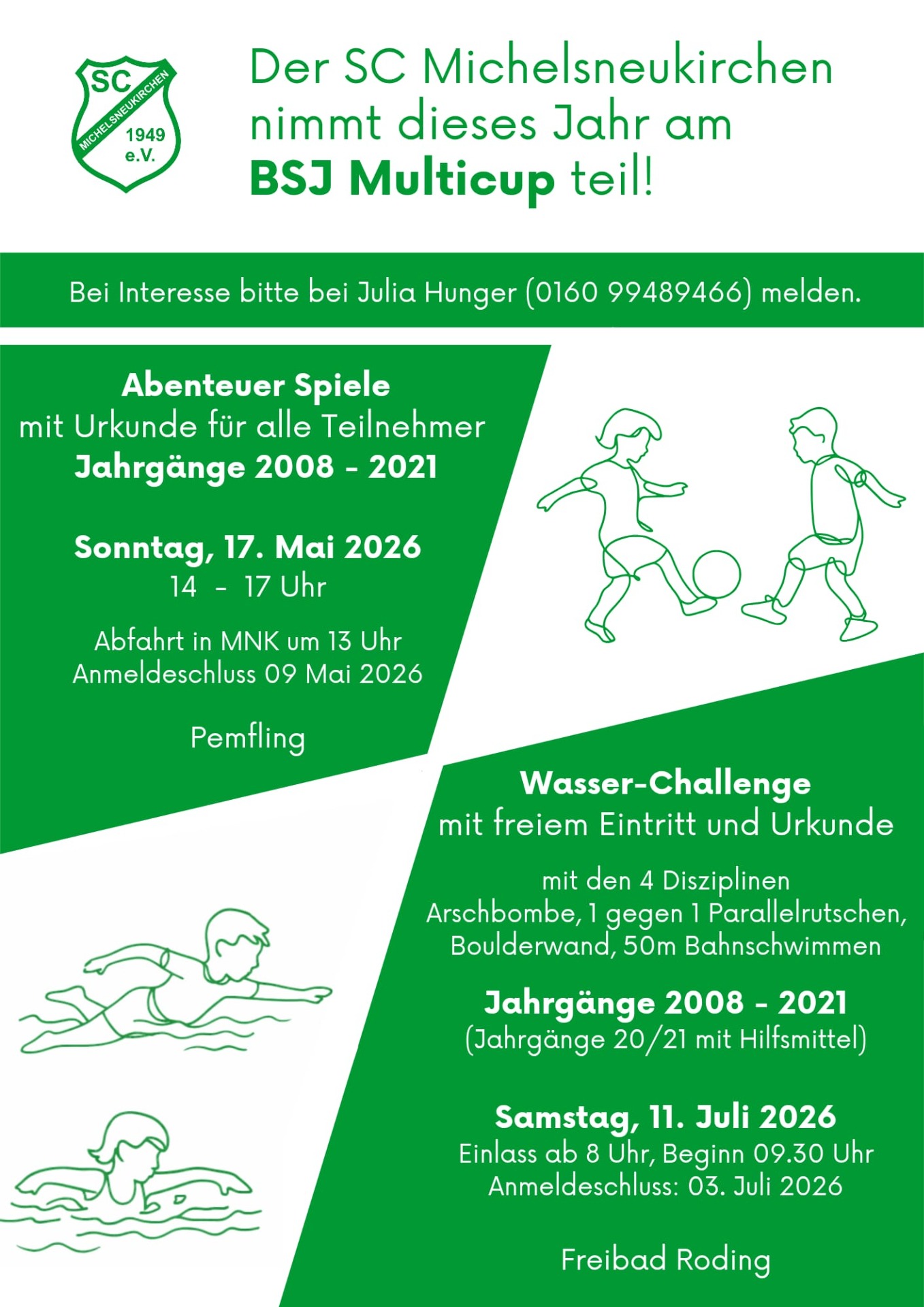 Am Samstag den 01.07.2023 nahm ein Team der Vereinsjugend des SC Michelsneukirchen am Schwimmtag der Bayrischen Jugend des BLSV im Rahmen des Multicup 2023 teil.